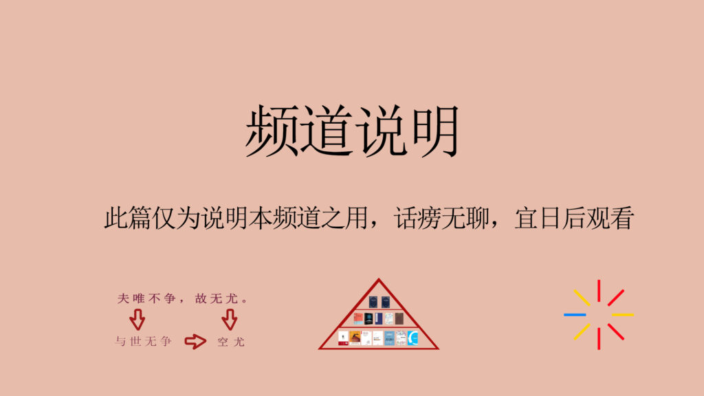 我读的书不多,可能就几十本一百本那样,但我要说的东西,浓缩一下就十几本左右,不喜欢看我叽里呱啦的就去看书,喜欢看的就多给点意见,也多提些问题,在订阅量没过一千之前我每周都会根据大家的反馈做出调整。再说书的内容,大家可以看到,我把书整理成了一个金字塔,但这并不是在说谁好谁坏,而是上层的东西需要下面认知做基础。多的就不说了,省的吊胃口。顺便说一下,因为这种看不清摸不着的东西实在难以描述,所以呢有时候我的语气就不会考虑那么多,“信、达、雅”中,“信”,准确永远是在第一位,所以我改稿会有好几次,但是类似于“我告诉大家这是不对的”我就会直接说成“不对的”,况且这毕竟算是娱乐节目,不是研究机构,大家看得开心,看的舒服就行了,如果你真的非常强迫要极其精细,那还是看我说的那些书。