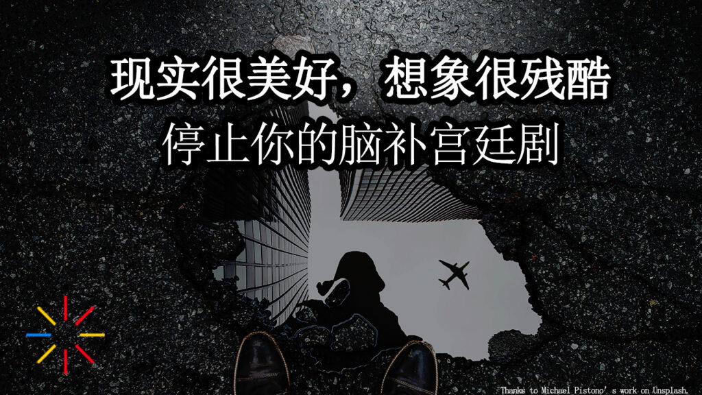 在这里还要引用柴静在《看见》里面采访卢安克的时候,卢安克说的一句话:“感受不是欲望和情绪,没有要达到什么的动机,只是诚实和持续不断地对事物平静的观察”。在感受的时候你不要去想着我这个时候应该有什么感受,而是要想着,我此时此刻到底有什么感受。你不需要将这种感受放大,更不能试着无视它,它就是通往真实世界的最重要的钥匙。如果你时常矫正自己的感受,你就会发现其实很多事情,即便是生死攸关的大事,在发生到你头上的时候,你的感受也只是有点稍稍的浮动,而且很快就会恢复平静,真正让你持续放不下的,是你的幻想,一个接一个的幻想。